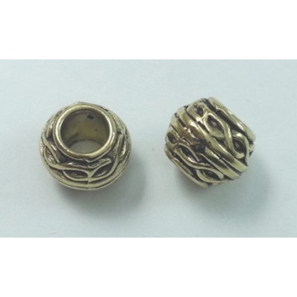 Abalorio en forma de barril con grabado rayas y trenzas , color oro