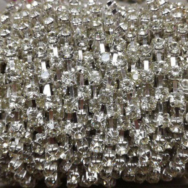 Cadena de strass 4mm cristal con fondo plateado (1 metro)